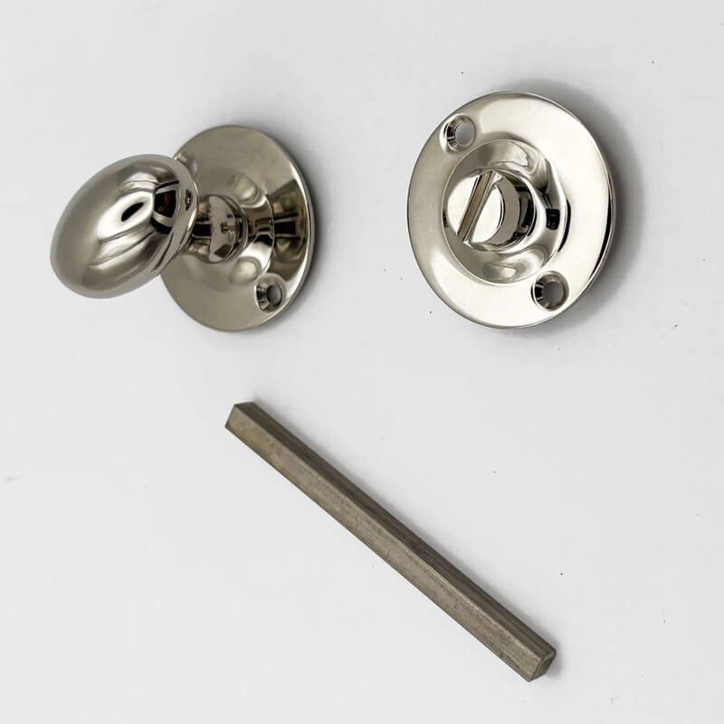 Solid brass, Nickel Plated oval thumb turn and release on round roses.